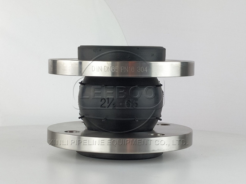 為了避免設備壓力瞬間升高造成球體爆;破,球體外配置有增壓圈,法蘭兩端配置有限位裝置,防止管道壓力升高產生超限徑向位移,從而起到保護設備的作用。本公司在原有的管道橡膠接頭的基礎上改進,滿足了原有管道橡膠接頭存在的弊端。