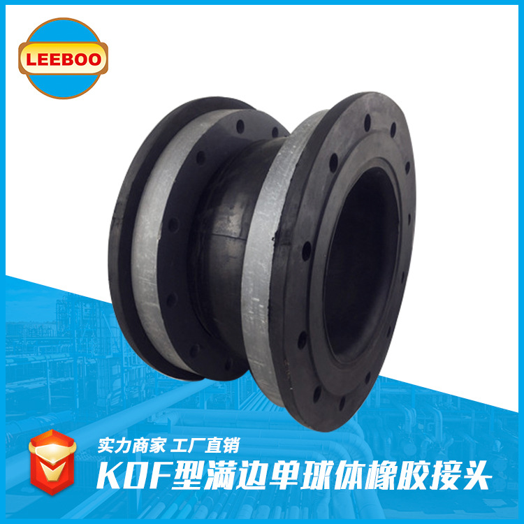 大翻邊橡膠接頭是一種改良后的產(chǎn)品,原型為KXT柔性單球橡膠接頭,不僅具有耐高壓、彈性好、偏轉(zhuǎn)位移大、耐老化、減震降噪等性能特點,更重要的是改善單球橡膠接頭在過高壓力下的拉脫狀態(tài),改良后的大翻邊橡膠接頭,配有限位螺釘,可使法蘭在一定范圍內(nèi)移動;密封面與平焊法蘭外徑一致,密封面也有鉆孔,將橡膠接頭與管道完全連接成一個整體,使橡膠接頭拉脫成為過去。(本產(chǎn)品適用于密封要求嚴(yán)格、壓力大的工程)。