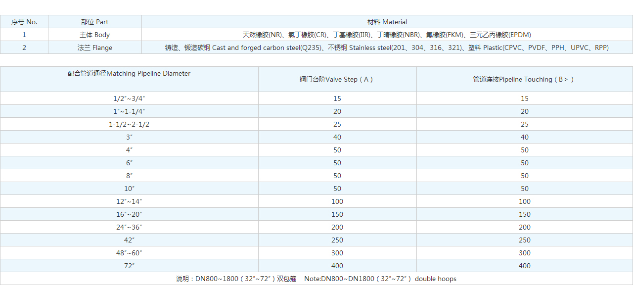 說明:DN800~1800(32″~72″)雙包箍 Note:DN800~DN1800(32″~72″) double hoops |